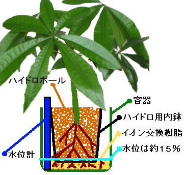 ハイドロカルチャーは水や培養液を入れ過ぎると、根が酸欠状態になって弱ってしまいます。水や培養液の入れ過ぎには注意してください。量は容器の15%ぐらい入れてください。しかし、真冬の間はハイドロボールが少し湿っている程度で、容器に水を貯めてはいけません。根腐れの原因になります。