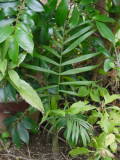 テーブルヤシはメキシコ原産のヤシ科の観葉植物です。熱帯地域の観葉植物ですが、標高が1000m以上の高い森の中に生育しているので、明るい日陰と空中湿度を好みます。標高の高い所に生息しているので、寒さも比較的強い部類の観葉植物です。少々暗い所で寒さにも比較的強いので、玄関などの日当たりの悪い所でも育てる事ができます。種まきされた小さなテーブルヤシが売られているのをよく見かけ、ハイドロカルチャーやミニ観葉植物の素材にも利用されています。テーブルヤシは大きくなっても2mぐらいにしかなりません。 |