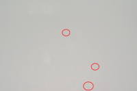 デジタル一眼レフの場合、レンズの付け替えでイメージセンサー(CCDやCMOS)にチリが付く事がよくあり、露出を絞って撮影するとチリが写って気が付く事があります。チリなどはレンズの絞りを開放すると写り難く、絞り込むと目立って映るようになします。右の写真はF8.0で写りこんだもので、F8.0ぐらいで写るチリは結構大きなチリになります。F11ぐらいでは写らず、F22ぐらにすると写るような小さなチリは、普段F22ぐらいで撮影する事がないのであれば、気にしなくてもよいと思います。![]() 絞り:F8.0 |