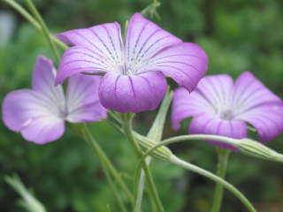 薄紫色で5cmぐらいの大輪の花を咲かせるギタゴと呼ばれるものが最も一般的なタイプです。同じ花色でも花の小さいタイプ、他に花色の異なる白花のオーシャンパール、薄ピンク色の桜貝、濃い桃色のパープルクィーンなどもあります。基本的な育て方は同じです。![]() アグロステンマ・ギタゴ |