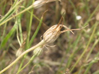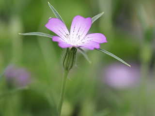 花が咲き終わってしばらくすると、茶色くなった実の中から種が採れます。袋などに入れて採っておいて秋に蒔くとよいです。![]() アグロステンマの実 |