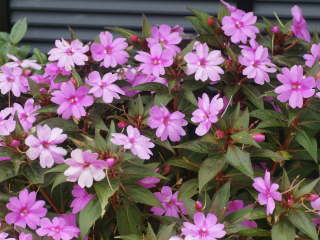 近縁種でよく花が似たニューギニアインパチェンスという種類も売られています。日当たりを好むので、ここで紹介している半日蔭を好む種類とは育つ環境がやや異なります。他にもニューギニアインパチェンスと生育がとても早い種類のインパチェンスが交配されて生まれたサンパチェンスという園芸品種もあり草丈が高く花も大きいです。![]() ニューギニアインパチェンス |