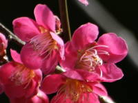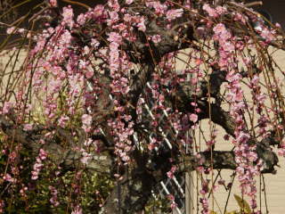枝が下がって咲くものがあります。花色は桃色のタイプが多いですが、白花もあります。大木になると見事で淡路島にある八木の枝垂れ梅が有名です。![]() 枝垂れ梅 |