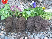 2段目まで - 最後に上部に植える苗を用意します。根鉢をそのままにして植えると2段目に植えた苗の根鉢と当たって収まらない事があるので、収まらない場合は根鉢の底だけ軽く壊して乗せます。苗を乗せて位置を決めたら根鉢の隙間を用土でしっかり埋めます。あとは水をたっぷりと与えたらできあがりです。