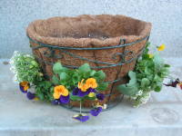 市販のワイヤー製のハンギングバスケットはヤシマットを使用したタイプと不織布を使用したタイプがあります。違いはヤシマットは厚くハサミで苗の根鉢を差し込む切れ込みが入れにくく、根鉢も差し込み難いです。不織布は薄いのでハサミで切れ込みを入れやすく比較的根鉢も差し込みやすいです。見た目はヤシマットの方がよいです。下のは吊り下げタイプのヤシマットを使用したハンギングバスケットの作り方を紹介しています。![]() パームハンギングバスケット (30cm) |
