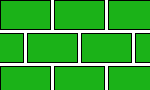 主に下の4種類があります。ベタ張りは隙間なく張るので、早く出来上がりますが、数が多く必要になります。目地張りは隙間を3cmぐらいあけて張ると、1、3倍ぐらいの面積を張る事ができるます。芝生の数を節約する事ができますが、隙間が埋まるまでやや時間がかってしまいます。一松張りは交互に、、筋張りは一列抜かして張るので、数はベタ張りの半分ぐらいで済みますが、覆い茂るには時間がかかってしまいます。一般的にはベタ張りか目地張りで行うの一般的です。![]() ベタ張り |