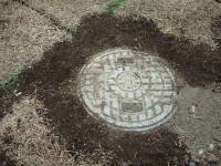 芝を張るとどうしても地面が高くなってします。うちの場合、戸井の雨水などが流れる雨水丸マスが低くなったので、丸マス用の5cm高くなるアジャスターを購入して付けました。雨水丸マスには大きさが何種類がありますが、うちの丸マスは直径25cm、蓋の直径が28cmのタイプで、高さ50mmのアジャスター(250×50)を使用しました。![]() 低くなった雨水丸マス |