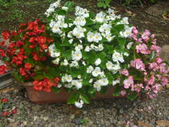 65cmプランターでは3、4株ぐらい、鉢植えは5、6号鉢に一株を目安に植えるとよいです。用土は市販されている花に対応した培養土を利用したり、自分で作る場合は赤玉土(小粒)6、腐葉土2、ピートモス2などでよいです。ハンギングバスケットの場合は吊り下げるので、ピートモス6、バーミキュライト2、パーライト2など軽い土を混ぜるとよいです。![]() |