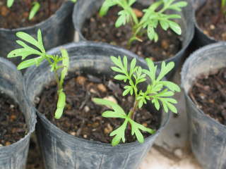 ビデンスの中には種まきから育てられる一年草タイプもあります。種まきの時期は春の3月中旬から4月上旬頃、暖地では秋の9月中旬から10月頃にも行う事もできます。種まきの方法は箱まきやポットまきで行うとよいです。箱まきでは本葉が2、3枚になったらポットに仮植えして、根が回ってきたら30cmぐらいの間隔で定植します。やや寒さに弱いので、秋に植え付ける場合は霜よけしておきます。| 5月中旬 |