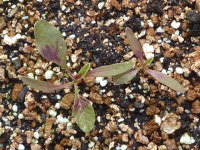 種まきから育てる事ができます。時期は発芽温度が20℃以上と高いので春の4月下旬から5月頃に行います。方法は移植を嫌うので、ポットまきか直まきで行うとよいと思います。連作を嫌うので、去年植えていた場合とは別の所で育てます。覆土は嫌光性種なので種が隠れるように覆土します。直まきでは株間が30cmぐらいになるように間引きして、ポットまきでは根が回ってきたら、根を傷めないよう花壇や鉢に定植します。鉢植えの用土は花の培養土に赤玉土(小粒)を2割ぐらい混ぜて水はけを良くしたり、自分で作る場合は赤玉土(小粒)7、腐葉土3などに植え付けます。下は箱まきしたもので、小さな頃に根を傷めないよう、丁寧にポットに仮植えすれば大丈夫です。| 5月下旬 |