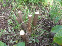冬になると地上部の枝のほとんどは枯れてしまうので、冬になったら株元から切ってしまいます。春になると株元から新芽が伸びて、秋には高さ2mぐらいにまで伸びて花を咲かせます。新しく伸びた枝を7月以降に切ると、花芽を切る事になるので注意してください。![]() 12月下旬(切り戻し) |