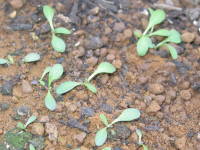 種まきで増やす事ができます。時期は秋の9月中旬から10月頃に行うとよいと思います。方法は箱まきで行うとよいと思います。覆土は種が隠れるように行います。本葉が2、3枚になったらポットに仮植えして、根が回ってきたら定植します。春の種まきも行えますが、暖地では6月頃によく花を咲かせるので、その時期の開花には間に合わないと思います。こぼれ種でもよく発芽します。![]() 箱まきでの発芽 |