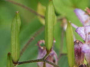 花後には実が成って種が出来ます。茶色くなったら中から採ってすぐにまいてもよいし、保存しておいて早春にまいてもよいです。方法は箱まきやポットまきなどで行って、ごく軽く覆土をして乾かさないように水やりします。早ければそのシーズンに開花するそうです。![]() ホトトギスの実 |