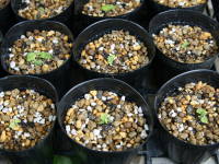 種まきは晩春の5月中旬〜6月中旬頃、涼しくなった秋の9月中旬から10月上旬頃に行えます。方法は種が小さいので平鉢に播いて、覆土はせずに、受け皿を敷いて底から給水すればよいと思います。ピートバンを使用しても楽でよいと思います。5月中旬頃に種まきを行う場合は、本葉が3、4枚出てきたら、夏の暑さに弱いので6月までに山野草の土などを利用してポットに仮植えして、強い日差しに当てないよう風通しがよく涼しい所で夏を越させ、秋の涼しくなった9月下旬頃になったら4号鉢に一鉢を目安に定植します。暖地では晩春に種をまくと夏越しがやや難しいので、秋の9月中旬から10月上旬頃に種まきを行うと安全に行えます。晩春に種を蒔くのに比べると開花は遅くなってしまいます。| 7月上旬 |