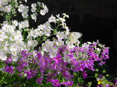 写真:プリムラ・マラコイデス(耐寒性タイプの白とピンク)
