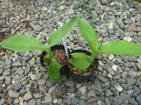 実性系の種類は種が売られている事があるので、種まきからも育てる事ができます。時期は発芽温度が20度から25度と高めなので、4月中旬頃から5月中旬頃に種を蒔くとよいです。種まきの方法はポットまきで行うとよいと思います。覆土は5mmぐらい、2、3粒ぐらい蒔いて元気なのを残すように間引きして、本葉が2、3枚ぐらい出てきたら植え付けます。下のは矮性種で草丈が1m弱の種類で鉢に植え付けました。| 6月上旬 |