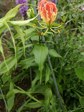 咲き終わった花を放置すると実が成って球根の成長を妨げるので、咲き終わった花がらは切り取ります。開花中の花は切り花にも利用できます。![]() グロリオサの実 |