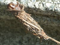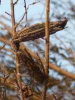 ミノムシに食い荒らされた事があります。殺虫剤ではなかなか利かないので手で取ってしまいます。ミノムシは絶滅危惧種に指定されているそうですが、放置すると枝が枯れてしまう事があります。![]() ミノムシ |