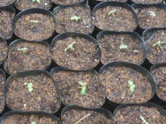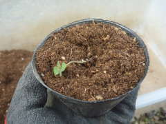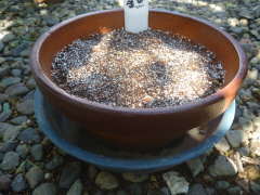 暖地では秋の9月中旬から10月中頃にまくと春から花を咲かせます。種が小さく上から水を与えると流れてしまうので、平鉢にまいて鉢底の受け皿から給水させるとよいです。好光性なので種に土をかぶせないようにします。発芽するまで乾かさないよう新聞紙を一枚かぶせたり、日が当たる所では遮光ネットをかぶせるとよいです。発芽したら新聞紙は外して、引っ付き過ぎているものは間引きした方がしっかりした芽が伸びます。またこの時期は虫から葉を食べられる事があるので、ネットで保護してやるとよいです。| 9月上旬 |
