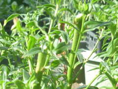 花の咲き終わった花茎は元から切り取らず、新芽の出ている節を残して切り戻すと、節から花茎が伸びて再び開花します。切った株には追肥してあげるとよいです。全盛期ほど立派な花ではありませんが、ちょっとした切り花に利用できます。![]() 花茎切り(5月下旬) |
