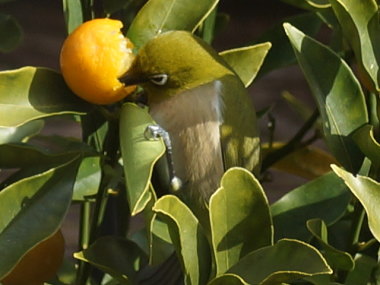 キンカンを食べるメジロ