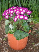 とても根の張る植物で、業者は2ヶ月に1回は植え替えをしています。購入後は根が詰まっている事が多いので、もし根詰まりしているようなら根鉢を壊さないよう一回り大きな鉢に植え替えます。用土は植えられている土を真似て作りますが、できなければ花用の良質な培養土、自分で作る場合は赤玉土6、腐葉土3、ピートモス1ぐらいを利用します。下の写真は根詰まりしてすぐに水切れするので、根鉢を壊さずに一回り大きい鉢に植え替えた時のものです。4月下旬頃に撮ったのは室内にありますが、戸外の日当たりのよい霜の心配のない所で育てていました。少し葉を絵描き虫にやられてしまいましたが、蕾が多い状態から購入すると結構長く花を楽しむ事が出来ます。| 3月下旬 |