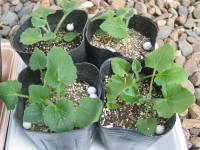 時期は初夏の6月中旬から7月上旬頃に種を蒔くと1月中旬から3月頃の開花、秋の9月頃に種まきをすると3月から5月中頃に開花します。夏に蒔くと花数が多くなってよいのですが、夏の暑さを嫌うので暑さ対策が難しいです。冬頃にお店に並んでいる株は、初夏頃に標高の高い所などで種まきして育て、冬は逆に暖かくして花を咲かせ、お店に出荷しているようです。一般には秋の涼しくなった9月頃に種を蒔いた方が育てやすくてよいです。方法は箱まきで行ったり、種が小さいのでピートバンを利用してもよいと思います。好光性なので覆土はせずに行います。箱まきでは本葉が5枚ぐらいになったらポットに仮植えします。定植時には元肥にマグァンプK(中粒)などを混ぜ込んで定植するとよいです。冬の寒さには強くないので、5度以上の日当たりのよい室内で越冬させます。下はポットまきして冬をサンルームの中で越させて花を咲かせたものです。春に小さなタンポポのような種が採れるので、採っておいて種を播いてもよいと思います。| 10月下旬 |