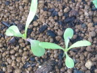 | 箱まきして1ヶ月ぐらいでポットに仮植えして軒下で越冬 |