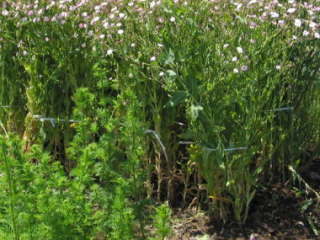 庭では日当たりがよい所に種を蒔きます。石灰を好むので1週間ぐらい前に苦土石灰と堆肥を混ぜておきます。、肥沃な土は好まないので、痩せ過ぎている場合は元肥を控えめに混ぜておくとよいです。芽が出たら間隔が20cmぐらいになるように間引きします。寒さには比較的強く、暖地では霜よけしなくても越冬します。![]() 種まき約3ヵ月後 |