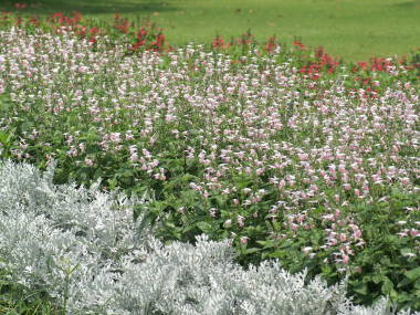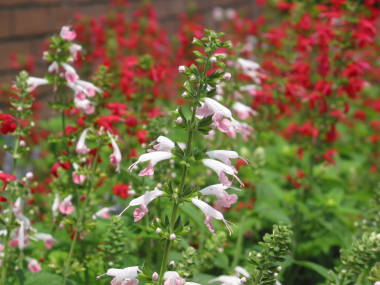 本来は多年草ですが、アメリカ南部が原産で寒さに弱いので、春まき一年草として扱われています。サルビアと言えば夏から秋に真っ赤の花を咲かせるスプレンデンスというのがお馴染みですが、他にも種類がいろいろあります。コクシネアは風になびくような細い茎に沢山の花をつける優しい感じのサルビアで、花色は赤、ピンク、白などがあります。蜂や蝶が蜜を吸っているのを見かけ、現地ではハチドリもやって来るそうです。