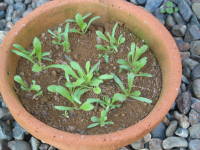 暖地での種まきは秋の9月中旬から10月頃に行えます。方法は直まきか箱まきで行うのがよいと思います。覆土は種が隠れるように行います。箱まきでは水はけのよい土を好むので、細かい川砂を混ぜて種まきするとよいです。本葉が2、3枚ぐらいの小さな頃にポットに仮植えして、根が回ってきたら庭では25cm〜30cmぐらいの間隔で定植します。鉢植えの用土は植え付けの項目と同じです。右は鉢に種まきしたもので、本葉が3枚ぐらいになったら庭にそのまま定植しました。直根で移植を嫌うスターチスですが、小さい頃に根を痛めないよう丁寧に行えば大丈夫です。![]() 11月上旬に庭に定植 |