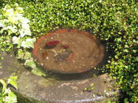 スイレン鉢などの水を入れる容器の大きさは、植え込んだ鉢がすっぽり入る40cm以上の大きさで、植え込んだ鉢を沈めると株元から上が10cm〜30cm深くなるよう、葉が水面に出るようにゆっくりと沈めます。姫スイレンは深さ10cmぐらいあれば大丈夫です。あまり深すぎてもいけないので、深い場合は底にレンガなどを敷いて高くするとよいです。メダカの飼育