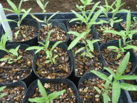 種まきの時期は、発芽温度が25度ぐらいと高いので、春の4月中頃から5月頃に行います。種まきの方法は箱まきで行うとよいと思います。覆土は種が隠れるように行います。本葉が2,3枚ぐらいになったらポットに仮植えして、根が回ってきたら25cmから30cmぐらいの間隔に定植します。鉢植えの用土は花の培養土や自分で作る場合は赤玉土6、腐葉土4などに、花壇への植え付けは苦土石灰、腐葉土、堆肥などを混ぜ込んで日当たりのよい所に植え付けます。| 6月上旬 |