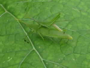 秋の種まきをして発芽した若い芽が食べられてしまう事がよくあります。コオロギにはデナポン5%ベイトを撒くと効果がありますが、オンブバッタには効果がないので見つけたら補殺して駆除しないといけません。種まき後に新芽を食べられないよう、防虫ネットで覆って予防した方がよいです。