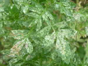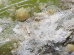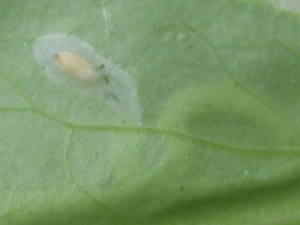 大きさは2mm前後で700種類ぐらいがいると言われています。主に春と秋に群れて発生して茎や葉の汁が吸われ、葉が縮れたり丸まったりして生育が悪くなります。モザイク病などの病気を媒介する事があり、また油のような排泄物で黒いスス病が発生する事もあります。メスが毎日卵ではなく幼虫をそのまま産み、約10日で成虫になるのですぐに増えます。多くは羽を持っていないのですが、数が増えたり植物が弱ると羽が出来たものが生まれ、飛んで移りまたそこで増えます。有効な殺虫剤はベニカXファインスプレーやベニカR乳剤など対応したものが沢山売られています。株元にオルトラン粒剤をまくと防除できます。