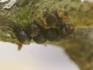 花木に発生する事が多く沢山の種類がいます。大まかに殻を持ったものと、蝋のようなもので覆われたコナカイガラムシ類がいます。薬剤はカイガラムシエアゾールなどの薬剤に効果がありますが、もし薬剤を使用しない場合や効果がなかった場合は濡らしたティッシュや古い歯ブラシなどで取り除きます。それでもまだ幼虫が残っていますが、殺虫剤は効くので1週間おきに3、4回ベニカXファインスプレーやベニカ水溶剤などを散布しておきます。卵に薬剤は効かないので、しばらくしてまた発生したら同じ作業を繰り返します。