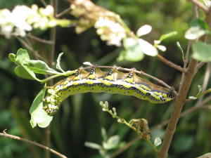 一気に葉を食べつくしてしまいます。大きいので園芸用の殺虫剤は効きにくいので、家庭用の殺虫剤で駆除するとよいです。植物にかかると葉に害が出る事があるので、火ばさみなどでつまんで植物にかからない所で散布するとよいです。