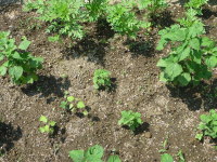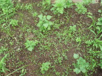 庭で草花や野菜を育てていると、どうしても草が生えてきます。放置すると草花や野菜の肥料分を奪ってしまったり、草が高くなると日当たりが悪くなってしまったり、風通しも悪くなってしまいます。また、虫の住処にもなって害虫の被害を受けやすくなります。特に春から秋はよく草が生えるので、庭では草取り作業が必需になります。草取りはできるだけ根こそぎ取る事が大切で、根が残るとまた生えてきます。![]() 草取り前 |