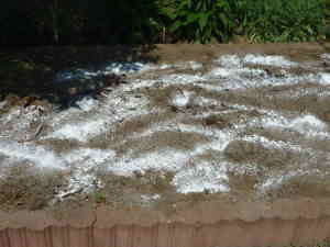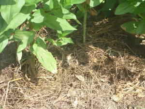 夏の日差しの下では土が乾きやすくいので、鉢植えではバークなどを敷いてマルチングすると、渇きを遅らせることが出来ます。庭でも枯草や藁などを敷くと土の渇きを遅らせることができ、雑草も生え難くなります。