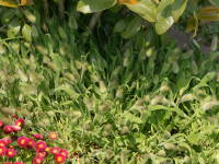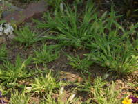 日当たりのよい所を好む草花や樹木はできるだけ長い間、日光に当たる場所で育てるようにします。日当たりが悪いと花の数が少なくなったり、あまりにも日当たりが悪いと生育が悪く徒長という、茎と茎の間があいて、ヒョロヒョロとした茎の伸び方になってよい花も咲かなくなります。| 同じ日に植えられたラグラス |