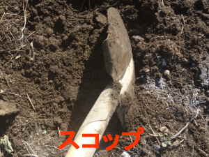 苗の植え付けや種をまく2週間前に、必要なら石灰をまいて耕しておきます。標準的にまく量は苦土石灰で1uにつき150g、消石灰で1uにつき100gぐらいで、土質にもよりますが大まかにPH1ぐらい上がる計算です。植物によって微酸性〜中性の酸度を好むものは、1.5倍〜2倍ぐらい多く混ぜて耕すとよいです。土の酸度が適正にも関わらず石灰を入れると、理想よりもアルカリに偏ってしまいます。そこで土壌酸度計というのが売られているので、計って石灰の量を調節すると安心です。写真のは電池は要らず、土に挿すだけで計ることが出来ます。土が乾いた状態や肥料分が多いと正確に計れないので、バケツ一杯の水をかけて30分から1時間して計るとよいです。![]() |