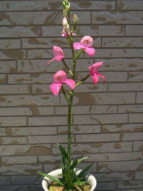 春の5月から6月頃に開花株がお店に出回ります。開花株はできるだけ明るい所で、できれば午前中の柔らかい日光に当てて育てた方が花色がよくなります。水を好むランなので、鉢土を乾かさないよう、鉢土が乾く前に水やりたっぷりします。鉢が軽くなるぐらいでは水不足になります。肥料は開花中に与えてはいけません。