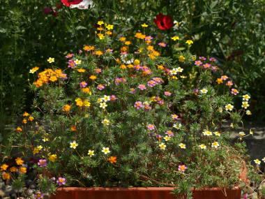 種まきの時期は9月下旬〜10月中旬頃に行います。方法は箱まきやポットまきや鉢に直播きしてもよいと思います。直根で移植を嫌いますが、箱まきして小さな頃に根を痛めないよう丁寧に移植しても大丈夫です。箱まきでは本葉が数枚出た小さな頃にらポットに仮植えします。ポット苗や鉢に直播きした苗は、霜の当たらない日当たりのよい所で冬を越させるとよいです。ポット苗は春になって根が回ってきたら15cmから20cmぐらいの間隔で植え付けます。鉢植えの用土はやや過湿を嫌うので花の培養土に赤玉土を2割ほど足したり、自分で作る場合は赤玉土(小粒)6、腐葉土3、パーライト1などに植え付けます。庭では水はけが悪いようなら腐葉土を、元肥に牛糞などを混ぜ込んで植え付けます。寒い所では霜除けしておきます。その他は、花の種まきを参考にしてください。| 10月下旬 |