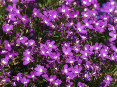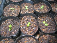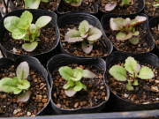 暖地では秋の9月中旬から10月中旬に種を蒔くとよいです。方法は種が小さいのでピートバンや平鉢に蒔くとよいと思います。種がとても小さいので、浅鉢に種をまいて水遣りは受け皿から水を吸わせるとよいです。好光性なので覆土はせずに行います。種は小さいですが、発芽率はとてもよいので、あまり密集して種を蒔くと間引きが面倒になるので注意してください。本葉が2、3枚ぐらいになったらポットに仮植えして、霜の当たらない軒下などで、凍りそうな日だけ室内に入れると安心です。鉢植えではポットの根が回ったら鉢植えに定植して、冬は霜の当たらない所で凍らせないようにして越冬させます。庭では霜が少なくなった春の3月頃になってから植え付けます。植え付け用土などは植え付けの項目と同じです。| 10月中旬 |