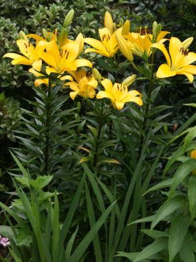 ヤマユリとカノコユリなど、日本に自生しているユリが交配されて作られた種類です。大きな花を咲かせるカサブランカ、黄色い花を咲かせるコンカドールなどが知られています。![]() コンカドール |