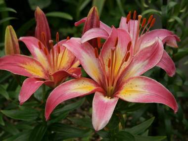 オニユリ、イワユリ、エゾスカシユリなど、またこれらと交配されて作られた種類です。スカシユリがよく知られています。![]() スカシユリ |