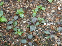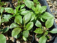暖地の種まきは秋の9月中旬から10月頃に行えます。方法は種が細かいので平鉢やピートバンなどで行えばよいと思います。覆土はせずに、鉢まきでは受け皿を敷いて底から吸引させるとよいです。本葉が2、3枚出たらポットに仮上して、本葉が5、6枚出たら定植します。半耐寒性で寒さに強くありませんが、暖地では霜に当たらないよう日当たりのよい軒下で越冬します。冬の生育はのんびりで、春になると急に大きくなります。| 2月中旬 |