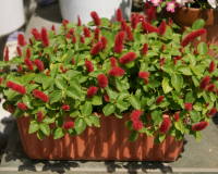 アカリファは直射日光を好む植物ですので、年間を通じて直射日光に当てて育てます。日に当たらないと花付きが悪く赤い色が出難くなります。熱帯の植物ですので、10月中旬頃になったら室内の日当たりのよい所で、最低温度5度以上で管理します。室内の日当たりのよい場所では11月まで花が咲きます。温度が確保できれば冬越えはそう難しくはありません。その他、詳しくは観葉植物の置き場所をご覧下さい。| 4月下旬から10月中旬 |