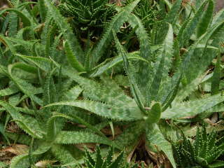 単にアロエと呼ぶとこの種類を指す事が多いです。江戸時代に日本へ入ったそうで、観賞用、薬草として利用され続けています。昔から「医者いらず」とも呼ばれ便秘、二日酔い、胃もたれ、軽い火傷などに効果があります。葉のトゲは邪魔なので切ると利用しやすいです。火傷は割いて張ると炎症が抑えられ痛みが和らぎ治りも早くなります。二日酔いや胃もたれの時は、噛んで皮は吐き出し果肉を食べると症状が軽くなります。鉢植えで育てられる事が多いですが、氷点下にならない地域では庭植えする事が可能です。![]() キダチアロエ |