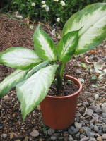 生育期は明るい日陰に置き、冬はレースカーテン越しの日光で育てます。冬は最低温度12度以上を保ちます。ディフェンバキアは5度以下の低温にあうと簡単に凍傷を起こし、その後の回復は困難になります。温室さえあれば育て易い観葉植物で、最低温度20度の設定で問題なく冬を越せます。温室栽培については温室栽培をご覧ください。| 4月下旬から10月中旬 |